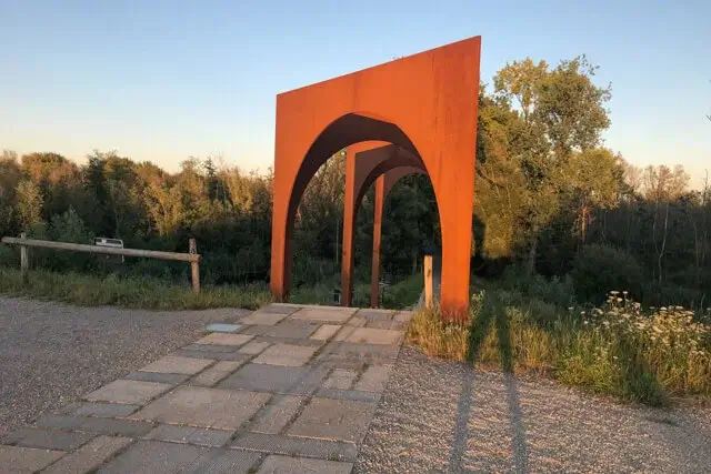 Bazel staat in de lijst van de vijftig mooiste dorpen van Vlaanderen en die positie heeft het dubbel en dik verdiend. Neolithische vondsten bewijzen dat hier al in de prehistorie mensen woonden. Later waren het achtereenvolgens de Kelten, de Romeinen en de Vikings die hier hun sporen achterlieten. De Sint-Pieterskerk op het pittoreske Koningin Astridplein is het vertrekpunt van deze route. De nieuw aangelegde ringdijk beschermt de woonkernen van Kruibeke, Bazel en Rupelmonde en zorgt ervoor dat het binnenstromende Scheldewater binnen de grenzen van het gecontroleerde overstromingsgebied blijft. De zes kilometer lange waterkering vormt meteen ook de begrenzing van het gebied. De Barbierbeek ontspringt in Sint-Niklaas en vormde jarenlang de natuurlijke grens tussen de dorpen Kruibeke en Bazel. De waterloop stroomde dwars door de polders en mondde via de Kruibeekse Kreek uit in de Schelde. Bij hevige regenval trad de beek vaak buiten de oevers, waardoor hij in het verleden voor flink wat wateroverlast zorgde. Bij de aanleg van het overstromingsgebied kreeg de Barbierbeek een nieuwe, bredere bedding. Een wachtbekken aan de rand van Bazel leidt het water via kokers doorheen de ringdijk, waar de Barbierbeek het door de polder via de uitwateringsconstructie in Kruibeke naar de Schelde brengt.