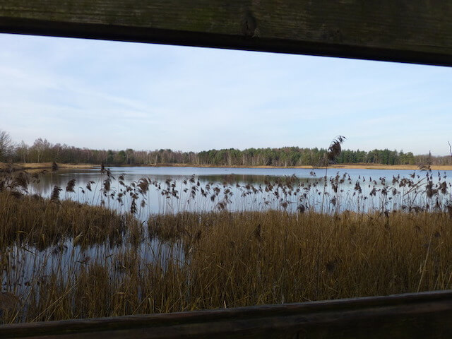 Prachtig uitzicht over de Augustijnenvijvers vanop deze vogelkijkwand. Om vogels tijdens de broedperiode en in de wintermaanden voldoende rust te bieden, werd er in de periode november - december 2008 een vogelkijkwand gebouwd aan de zuidoosthoek van de Augustijnenweyer. Door de beschutting van deze wand kan je de vogels van dichtbij beloeren, zonder dat deze hierdoor extra verstoord worden - een duidelijke meerwaarde dus voor zowel de wandelaars als natuur.