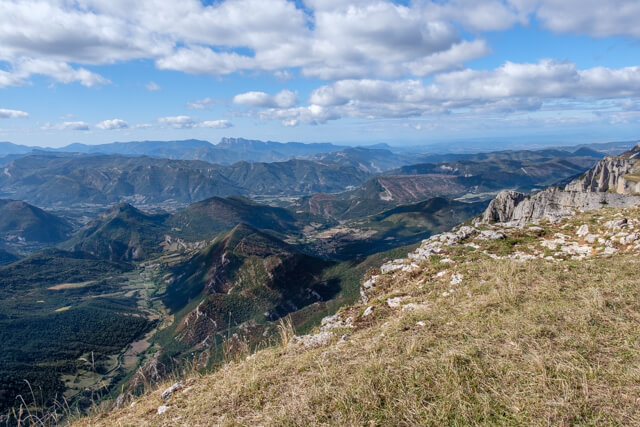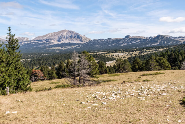 If you want to get to know Les Hauts Plateaux du Vercors, this walk is an absolute must. Via an oak forest you climb to the plateau of the Montagne de Beure. At the viewpoint you will be presented with a first impressive panorama, with the Grand Veymont as eye-catcher. Then you walk to the edge of the cliffs and get the most spectacular views of the Glandasse, the Diois region and peaks of the Vercors. At a last viewpoint you get a nice view of the Col de Rousset before you descend back to the starting point.