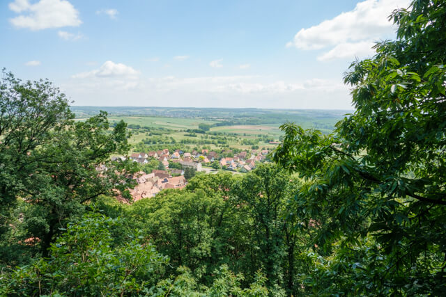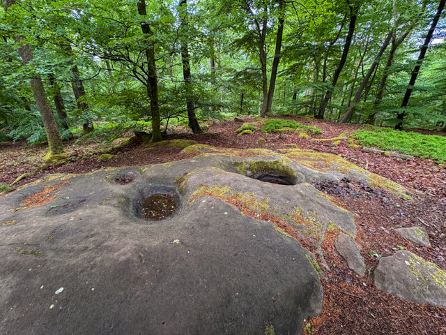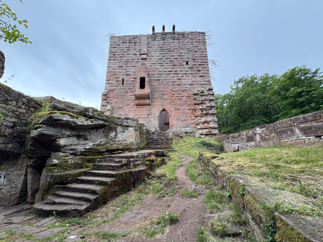 At the beginning of the route, you briefly follow the Falkensteinerbach stream, then immediately enter a beautiful mixed forest. You ascend through the forest to the ruins of Wasenbourg Castle. The castle is located at an altitude of 410 meters and dates back to 1275. Next to the ruins lies the Wachtfelsen rock, an ancient shrine dedicated to Mercury. After visiting the castle, you continue through the forest, passing the Jardin des Fées (Fairy Garden). Historians are convinced it was a fortified camp possibly used in 1398 during the siege of Wasenbourg by the troops of the Bishop of Strasbourg. A little further on, you'll discover mysterious goblet stones, formed by erosion or perhaps altar stones. Another mystery is the Witches' Square; according to local legend, the Witches' Square was a meeting place for witches from Oberbronn, who gathered there to perform rituals. A little further on, you'll visit the Tour Wasenkoepfel, a 10-meter-high tower at the summit of the Wasenkoepfel, dedicated to the poet and ethnologist Auguste Stoeber and built in 1887 by the Vosges Club. While you won't have a view from the tower, it's a beautiful spot to visit. From the tower, you descend to the viewing point at Buckelstein. Here, you'll have a beautiful view of the village of Oberbronn and the Alsace Plain. Continuing down, you'll arrive in the charming village of Oberbronn, with its beautiful half-timbered houses. From the village, you'll walk through the forest back to the starting point.