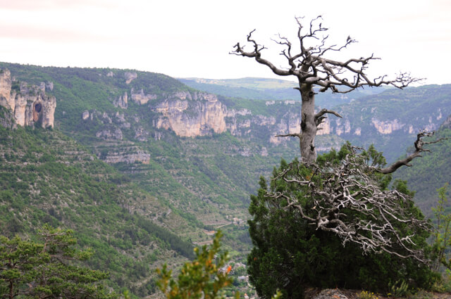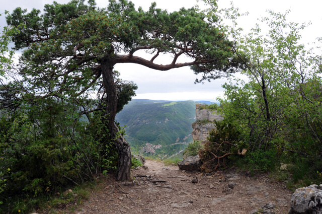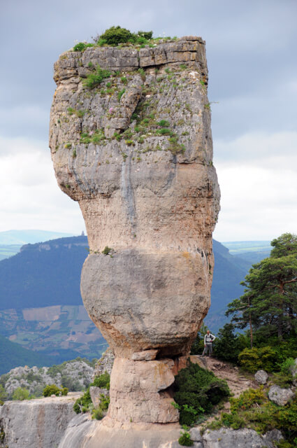 This walking route is an absolute highlight in the extreme southeastern corner of the Causse Méjean. You walk through a forest in the direction of the Corniche de la Jonte from where you will be served unique panoramas on the Gorges de la Jonte. You pass two monoliths Vase de Chine and Vase de Sèvres, respectively 21 and 23 meters high. This is the natural habitat of the griffon vultures that you will certainly see floating above the cliffs. The second part you walk high above the Tarn with beautiful views. After a visit to the source Fontaine du Teil you return to the starting point.