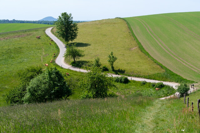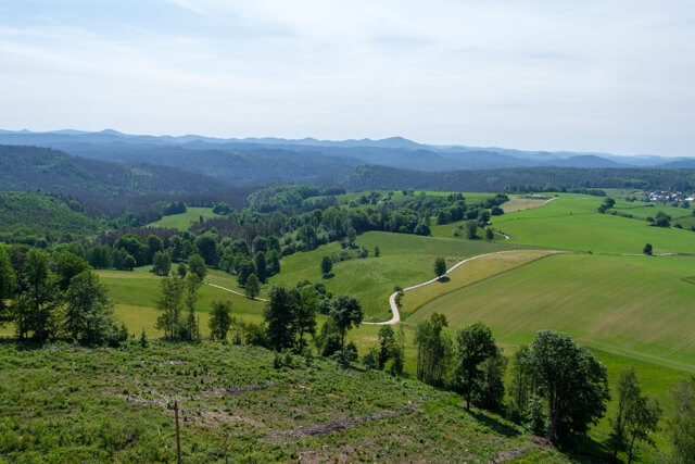 After leaving the village you walk through an open landscape towards the Weifberg. Here is the 37 meter high Weifberg Tower. From the tower you have a beautiful view of the vast surroundings. After visiting the Weifberg, you walk through an open landscape past the Kaltenbergblick viewpoint in the direction of a mixed forest. Eventually you arrive in the beautiful Weißach valley. You follow the winding river along the border with the Czech Republic. If you are lucky you can spot the Black Stork here. You leave the valley where the Weißach flows into the Kirnitzsch. You now walk along an unpaved road in the direction of the Obere Mühle. Here you can take a break and enjoy a snack or drink. You go through a piece of forest to arrive in an open landscape. Just before the village you can go back and forth to the Emmabank, a viewpoint.