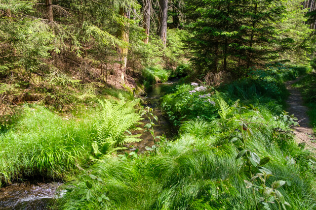 Walk from the village of Hinterhermsdorf to the lookout tower on the Weifberg and through a mixed forest to the beautiful Weißach valley on the border with the Czech Republic.