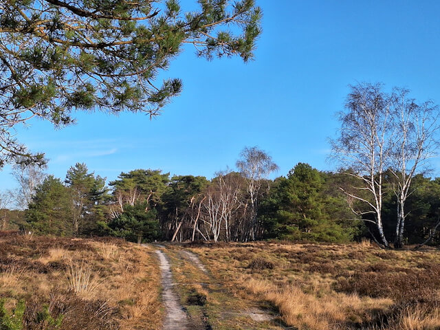 The IJzeren Man is a fen-rich recreation and nature reserve with a large pond, the Grote IJzeren Man, at its edge. The Boshoverheide and the Weerter- and Budelerbergen consist of coniferous forests, dry heathlands, and drifting sands. Much of it is a military training ground. An extensive urn field lies on the Boshoverheide heathland. The burial mounds are approximately 2,500 to 3,000 years old and date from the late Bronze Age and early Iron Age. During that period, people were cremated and then buried in an urn within a small burial mound. Because people were buried close together, entire fields of small mounds developed. It is the largest urn field in the Netherlands and even one of the largest in Northwest Europe. Much of it has disappeared or been destroyed over time. The Iron Rhine, a railway line that once connected Antwerp and Mönchengladbach, runs through the area. Since 1992, the section between Roermond and Dalheim in the Meinweg nature reserve has been closed. After leaving the Weerter and Budeler Mountains, the circular walk continues through the Weerterbos, a forest situated in a lowland area featuring fens, marshy areas, and a large area of open grassland. Visitors to the red deer habitat will pass the beautiful stream, the Oude Graaf, and a border church monument. The border church monument is a reminder of the period from 1648 to 1795. During that period, a national border ran between the Republic of the United Netherlands and the Spanish. To accommodate Catholics, who were not allowed to practice their religion publicly in the Republic, a small church was built just across the border. The Hugterheide consists of drifting dunes, mainly covered with pine trees. The forest area is mostly characterized by pleasant winding forest paths, after which the circular walk ends at the station in Maarheeze.