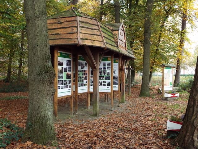 In the Beestenveld you pass a remnant of the Koordekanaal and a watercourse called the Peelse Loop, parts of which were part of the Koordekanaal. The Koordekanaal itself was part of the Peel-Raamstelling a Dutch defense line that was constructed in 1939. It formed a second line to reinforce part of the line at the Defense Canal. The Klotterpeel is a small peeling area that has escaped the spotlight. Attempts were made to mine it on a small scale, but this turned out to be unprofitable. The area recovered to the swampy conditions that were still common at the beginning of this century with a large fen in the middle, the name refers to the peat cutting. The Dotted Mountain consists of two parts, the eastern part where this stage continues, consists of beautiful avenues that belong to the manor, the western part consists of pine forest with dots in the landscape. The countless dots are drifting dunes that were created by sand drifts. In the outer eastern part, the stage goes over a part of an old path the Oude Bakelsedijk that is now only visible as a worn unpaved path. For centuries peat was transported over this path by the inhabitants of the Peel. This peat was dug into the swampy peatland nearby and was taken away as fuel, bedding material, fertilizer and for sale (the latter often illegally). In 1810 the Oude Bakelsedijk was one of only two major roads that ran through this part of the Peel.