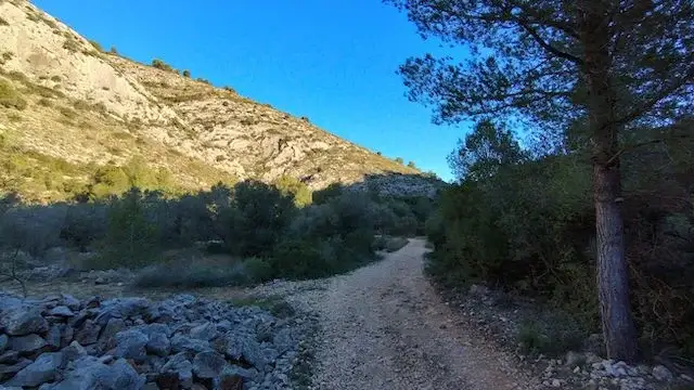 From the cemetery of Benissa, the trail winds through valleys and mountains, surrounded by vineyards, almond trees, and olive groves. Along the way, you'll encounter old country houses and stone buildings, such as the abandoned site of the Roca de la Salve, the Font de la Mata area with the dilapidated Casa de los Xaparrundos and its cistern, and another ruined lime kiln. The literal highlight is the Alt dels Serrellars, where, at an altitude of 432 meters, you have a magnificent 360-degree panoramic view of the surrounding area. Everything bears witness to the footprints of those who walked this route over a century ago.