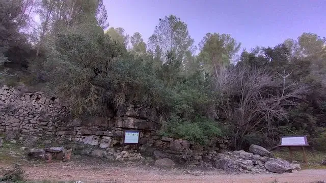 The Casa de los Xaparrundos and its cistern are a dilapidated 19th-century farmhouse used for raisin production. Next to the house is a stone water cistern, 11 meters long and 2.8 meters wide, with two round arches at each end.