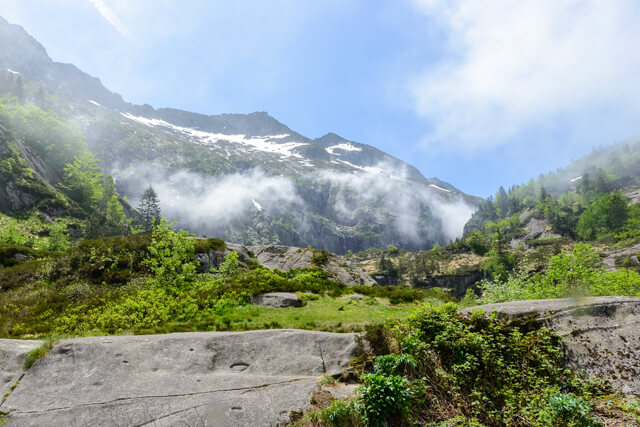 In het vroege voorjaar kunnen er nog sneeuwvelden liggen.